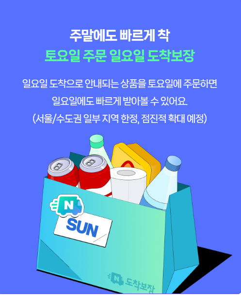 토요일에 구매해도 일요일 도착 보장 (서울/수도권 일부지역 한정) |