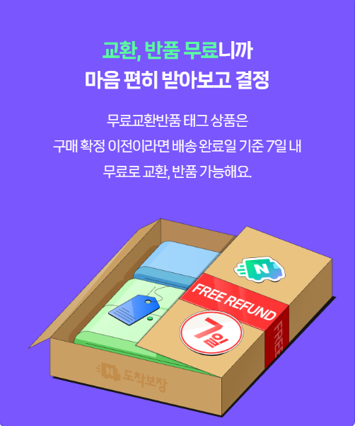 마음에 들지 않아도 간편하게 무료 교환 반품 가능 |