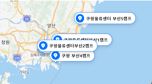 거주하시는 지역별로 쿠팡캠프가 몇개인지, 어디에 있는지 확인을 해보실 수 있어요.