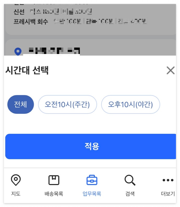 2. 원하는 배송 블록(시간대 및 지역)을 선택합니다.